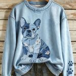 Nina - Dámská mikina s denimovým patchworkem ve stylu francouzského buldoka