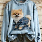 Perla - Dámská dlouhá rukávová mikina v retro stylu Patchwork Umění Zvířat Tisk Casual Comfort