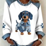Reina - Mikina s kapucí pro dámy s patchworkovým designem z džínoviny pro jezevčíky