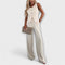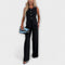 - Elegantní design: Bezramenný top má rafinované detaily s knoflíky a je spárován s kalhotami rovného střihu pro moderní a sofistikovaný vzhled.