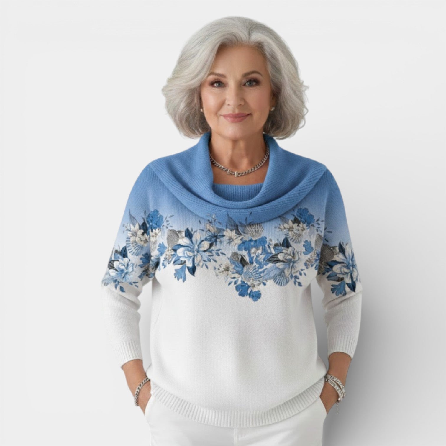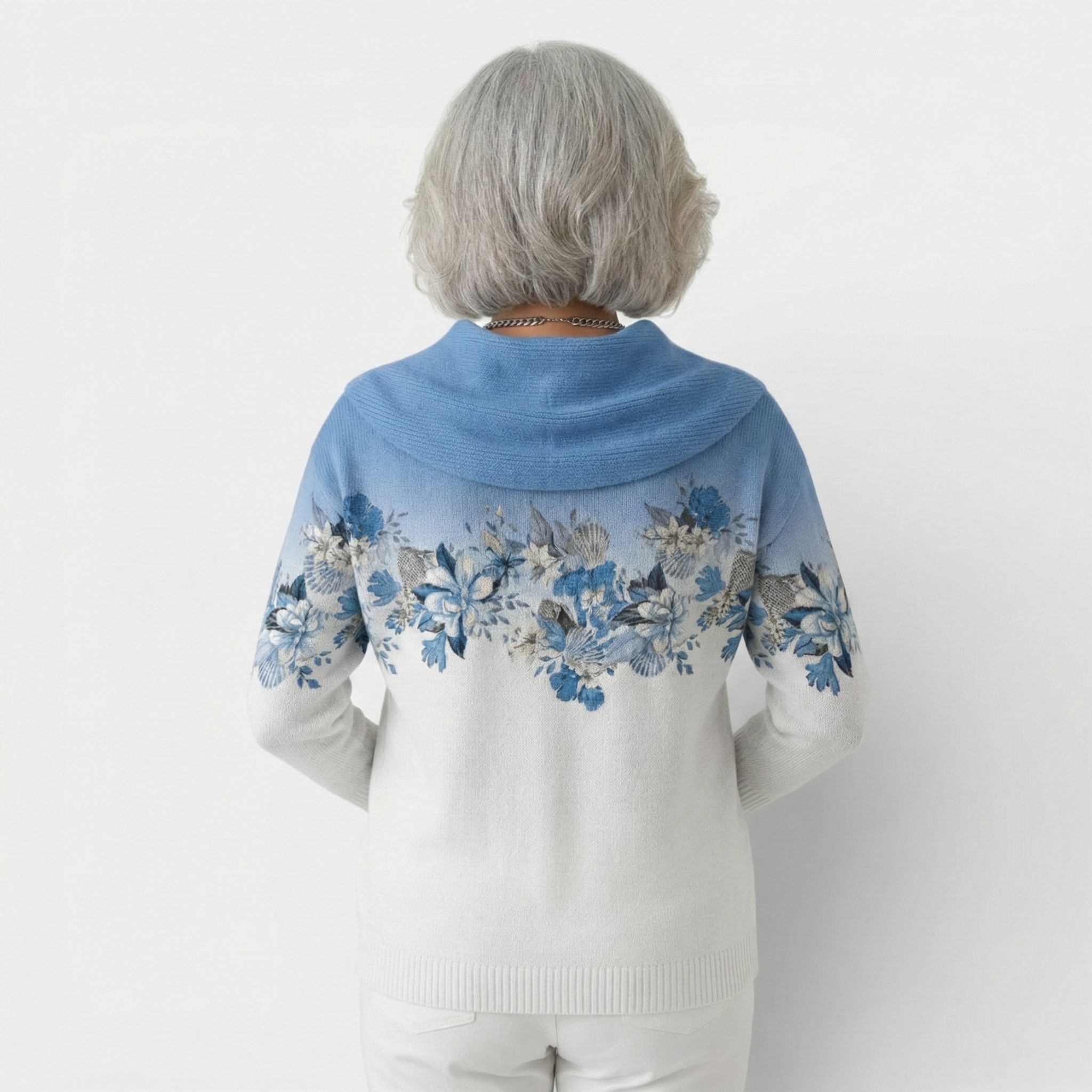 Jemný design: Botanický potisk v horní části přitahuje pozornost k tváři a dodává svetru ženský a romantický nádech.