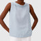 Top Natálie je ideální volbou pro ty, kteří hledají kombinaci pohodlí a jedinečného designu. Tento lehký, lněný top bez rukávů je ideální pro teplé dny a jeho originální, přehnutý límeček dodává celému kousku sofistikovaný a moderní vzhled. Je k dispozici v několika jemných barvách, které se snadno kombinují, a díky volnému střihu je perfektní pro každodenní nošení.