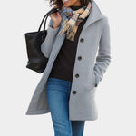 Kabát Klára spojuje nadčasovou eleganci s praktičností každodenního nošení. Díky zapínání na knoflíky, lichotivému střihu a hřejivému materiálu se skvěle hodí jak k neformálním procházkám, tak do kanceláře či na večerní setkání.