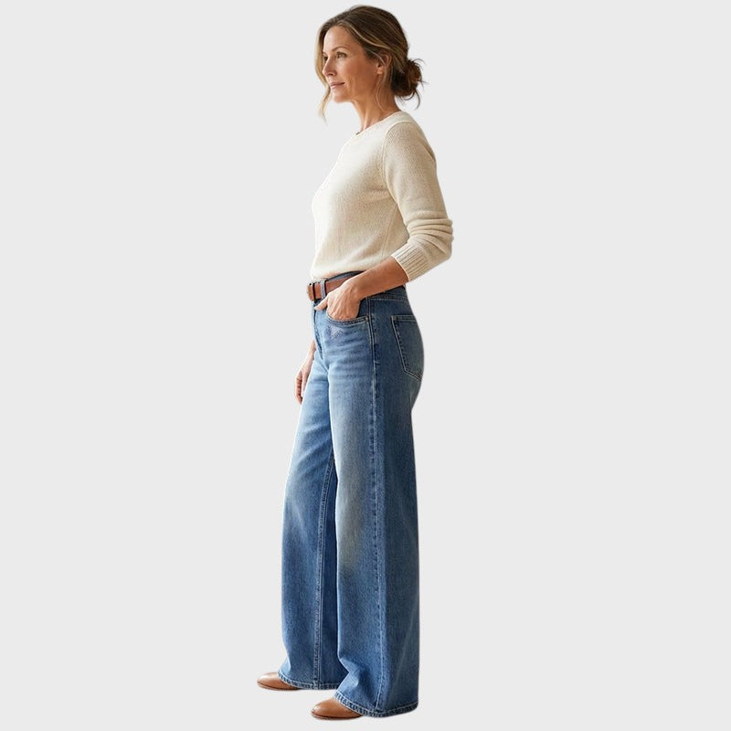 Maximální pohodlí: Díky širšímu střihu vás džíny nikde neškrtí a poskytují absolutní volnost pohybu, což oceníte při sezení i chůzi.