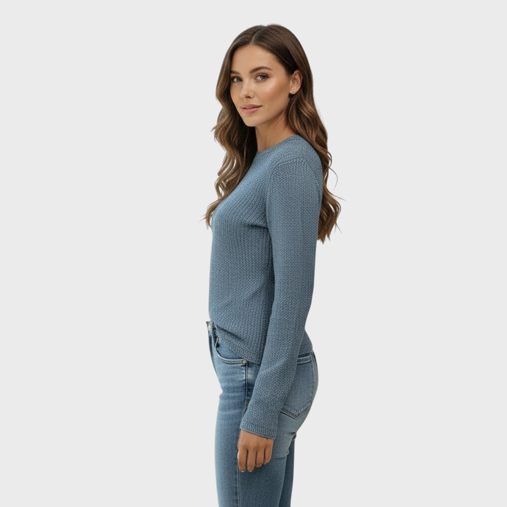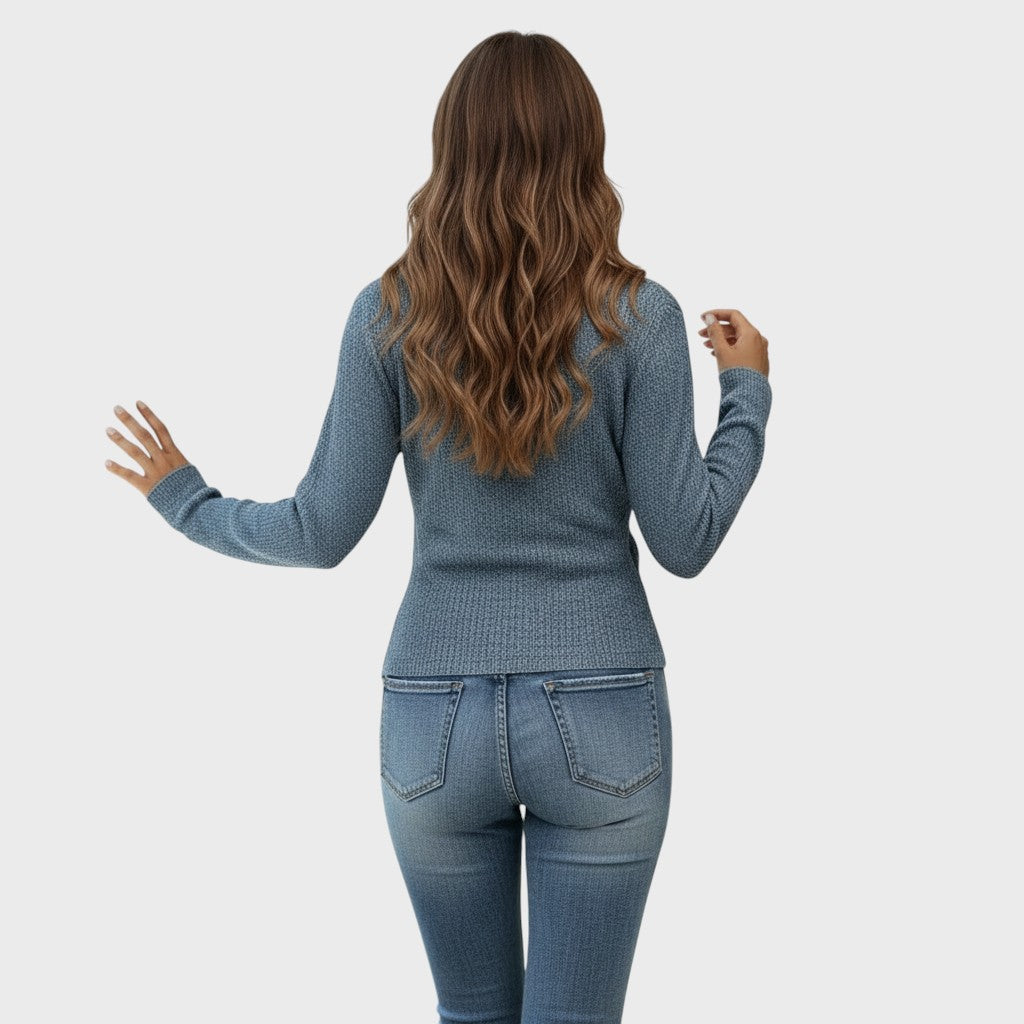 Texturovaný úplet: Jemná struktura pleteniny dodává svetru zajímavý vizuální detail a prémiový vzhled, aniž by přidávala na objemu.
