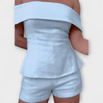 Olivia - Bílý bavlněno-lněný dvoudílný set