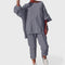 Souprava Andrea vznikla pro moderní ženy, které ocení jemný a uvolněný design při zachování stylu. Měkký top s lehce oversized střihem doplňují rovné, volné kalhoty s pružným pasem — ideální outfit pro práci z domova, relax nebo cestování.