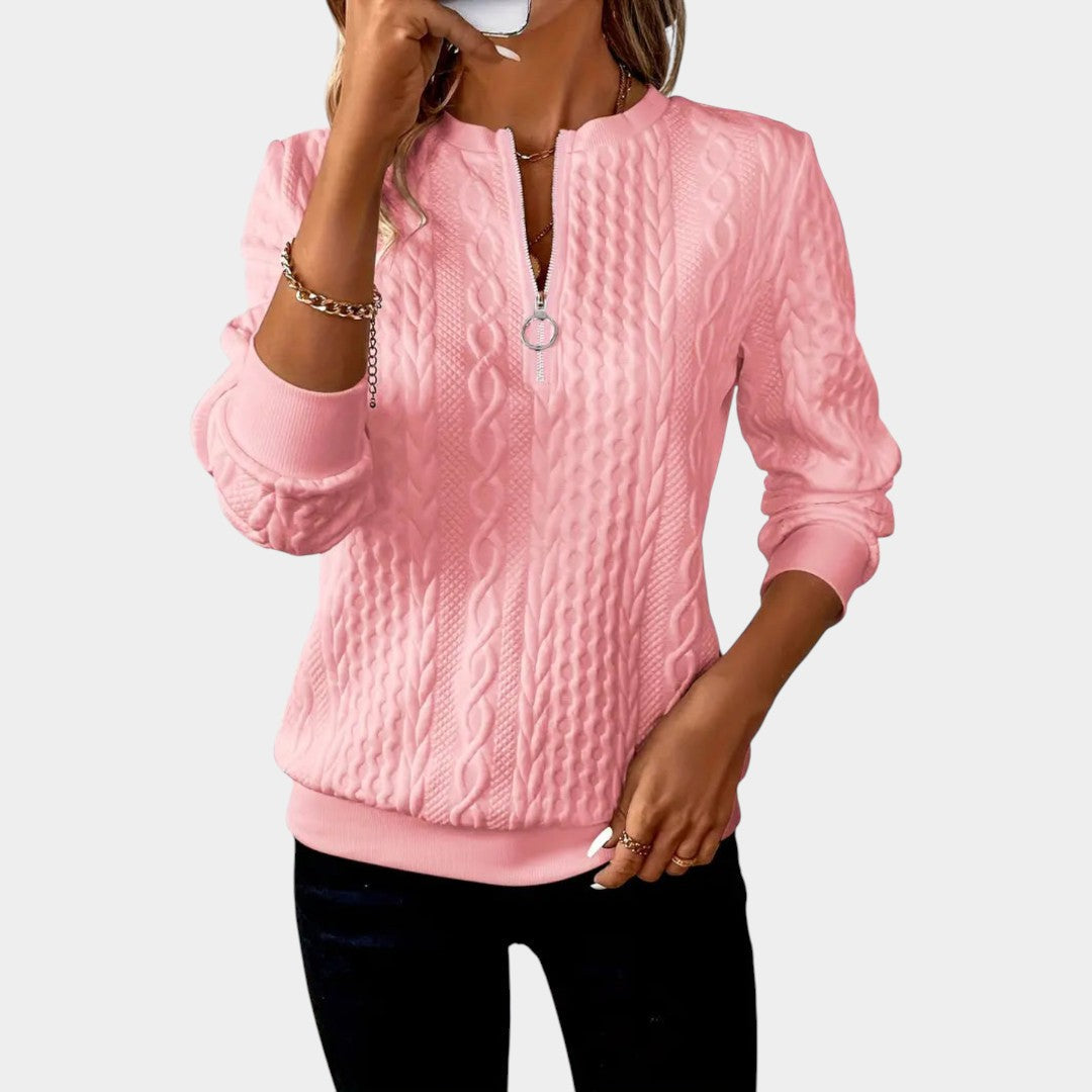 Amálie – Dámský svetr s copánkovým vzorem a zipem