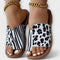 Získej ultimátní stylový impuls pro každodenní nošení s těmito nápadnými dvoubarevnými pantoflemi s leopardím vzorem. Otevřený design prstů a plochý podpatek nabízejí maximální pohodlí, zatímco výrazná kombinace leopardího a zebřího vzoru dodává tvému outfitu odvážný nádech. Robustní gumová podrážka zajišťuje dobrou přilnavost a měkká umělá stélka ti umožní nosit je pohodlně po celý den. Ideální pro uvolněné letní dny nebo rychlé nákupy ve městě, kde kombinuješ styl a pohodlí.
