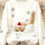 Krásný Vánoční Kočičí Umělecký Tisk pro Ženy Casual Flanelová Mikina