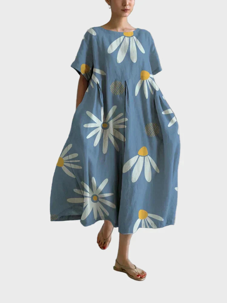 Karolína Sofistikovaná Lehkost a elegance Vzdušné kopretinové šaty nabízejí sofistikovaný styl s plynulou linií a uvolněnou, širokou siluetou. Jemný, měkký materiál zajišťuje celodenní komfort a snadné kombinování pro různé příležitosti. Co dělá tento produkt tak výjimečným: Lehký materiál: Přiléhá
