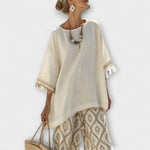 • Volnou blůzu s detaily třásní pro šik vzhled