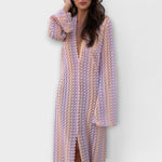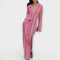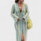 Ponořte se do uvolněného luxusu našich splývavých maxi šatů – nezbytný kousek pro stylové prázdninové chvíle. Vyrobené z lehkého materiálu, nabízejí volný střih, který dokonale spojuje pohodlí a sofistikovanost. Hluboký V-výstřih a dlouhé rukávy vytvářejí ženskou siluetu, zatímco délka ke kotníkům zajišťuje elegantní vzhled – ať už na pláži nebo při večeři.