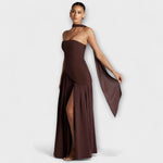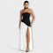 - Kontrastní design: Působivý černý top bez ramínek kombinovaný s volnou bílou sukní pro vzhled vysoké módy.