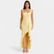 Justýna jsou jemné večerní šaty, které zaujmou svou elegancí a smyslným střihem. Světlý pastelový odstín dodává šatům jemnost a ženskost, zatímco asymetrická sukně s volánem vytváří sofistikovaný a moderní efekt. Hladký korzetový živůtek s hranatým výstřihem krásně zvýrazní dekolt i siluetu. Tyto šaty jsou ideální volbou na večírky, slavnostní události nebo letní společenské akce, kde chcete působit výjimečně.