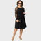 Efekt tetování: Průsvitné tylové rukávy jsou zdobeny precizní černou výšivkou s květinovými motivy, která na kůži vytváří dramatický a luxusní efekt.