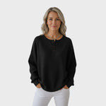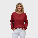 Model Helle je definicí "hygge" stylu – útulnosti a pohody. Tento svetr se vyznačuje ikonickou vaflovou strukturou, která materiálu dodává hloubku a měkkost. Díky střihu ve stylu "Henley" s ozdobnými knoflíky u krku působí ležérně, ale přitom upraveně. Je to ideální kousek pro ženy, které hledají maximální pohodlí, aniž by se vzdaly stylu – ať už na doma, nebo na kávu do města.