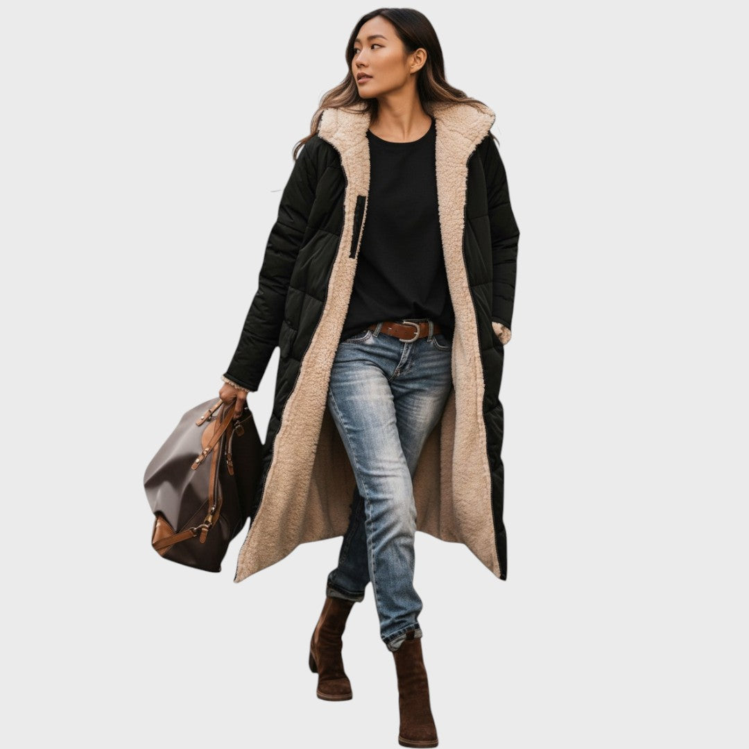 Kora - Hřejivý kabát s kožešinovou podšívkou