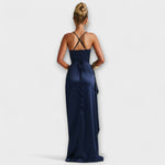Objevte Lora Námořnické Maxi Šaty, které kombinují eleganci a půvab. S okouzlujícím srdcovým výstřihem a odvážným, vysokým rozparkem na stehně zvýrazňují vaši siluetu a přidávají nádech vzrušení. Sametově saténový povrch vytváří luxusní dojem, zatímco nastavitelné ramínka zajišťují dokonalé padnutí.