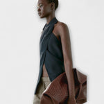 • Čelní knoflíková léga: Moderní twist na klasické krejčovství, který dodává hloubku vaší siluetě.