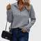 Tento svetr byl navržen tak, aby spojoval styl a pohodlí při každé příležitosti. Jeho poloviční zip dodává moderní a všestranný detail, který umožňuje upravit límec podle vzhledu, který chcete vytvořit – ať už ležérní, nebo elegantní.