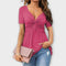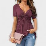 Tohle univerzální tričko pro ženy bez námahy kombinuje pohodlí a styl. Vyrobeno z vysoce kvalitního polyesteru, nabízí lehký pocit a lichotivý střih – ideální pro teplé dny nebo uvolněné elegantní outfity. Klasický V výstřih a krátké rukávy dodávají designu nadčasový nádech, zatímco běžná délka se perfektně hodí k džínům, sukním nebo šortkám.