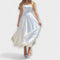 Tyto stylové midi šaty jsou vyrobeny z luxusního saténu nebo vysoce kvalitní směsi látek, která vytváří rafinovanou siluetu s krásným leskem. Přiléhavý korzet, čtvercový výstřih a jemné ramínka krásně zvýrazňují ramena a pas.