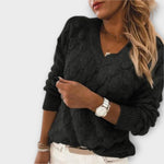 Magdaléna Sofistikovaná Elegantní pletený svetr Vkusný svetr s lichotivým výstřihem do V a volnějším střihem nabízí pohodlí po celý den. Jemný úplet hladce přiléhá k pokožce a zaručuje volnost pohybu, ideální do práce i na volný čas. Co dělá tento produkt tak výjimečným: Příjemný materiál Jemný úple