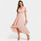 Miluše jsou stylové letní šaty, které propojují lehkost, eleganci a pohodlí. Díky jemnému střihu s výstřihem do V a asymetrickou sukní působí šaty moderně a zároveň velmi ženským dojmem. Lehký vzdušný materiál zajišťuje maximální komfort během horkých dnů, zatímco decentní pastelová barva dodává outfitu svěží nádech. Ideální volba pro letní oslavy, dovolenou nebo romantické večery.