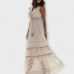 Cítíte bezstarostnou bohémskou eleganci s našimi maxi šaty Paige. Dokonalé pro jakoukoli příležitost, Paige kombinuje lichotivý A-řez siluetu s jemnými krajkovými detaily, což vám dává jak eleganci, tak uvolněný vzhled.