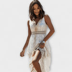 Plynulá silueta Paige a složitý krajkový vzor z ní dělají univerzální volbu, ideální pro přechod z dne na noc a přitom nabízí nadčasovou bohémskou atmosféru.