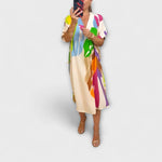 Snadno přidejte barvu do svého dne s těmito stylovými šaty, které potěší hravým potiskem listů. Jemná, lehká tkanina zajišťuje pohodlný a vzdušný pocit při nošení – ideální na jaro, léto a začátek podzimu.