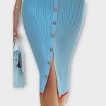 Oživte svůj šatník elegantními pastelově modrými žebrovanými úzkými šaty s kontrastním lemem!