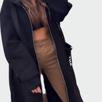 Věnceslava Sofistikovaná Prodloužený Kabát Se Kapucí
